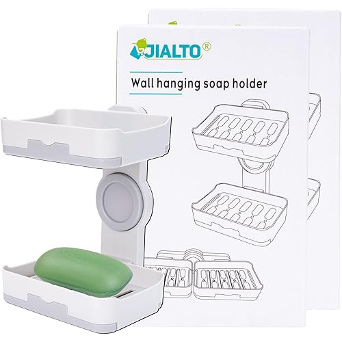 4154035 reviews for JIALTO Plastic Wall Mounted Double Layers Soap Dish Saver with Drain Tray, Adhesive Sponge Holder No-Drilling Soap Holder for Shower Bathroom Kitchen – Multicolour