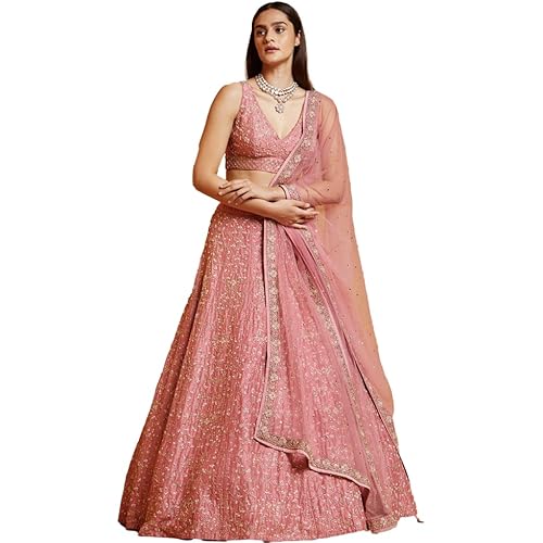 JIHU CULTURE Women’s Pink Malai Silk Semi-Stitched Lehenga Choli Set With Sequins Embroidered Work