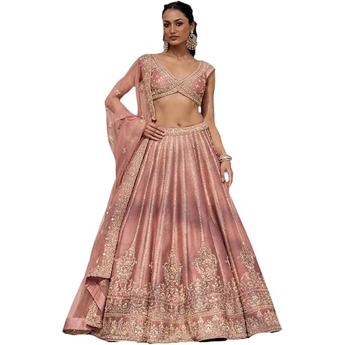 5053 reviews for JIHU CULTURE Women’s Semi-Stitched Pink Fancy Silk Zari & Sequin Embroidered Lehenga Choli with Net Dupatta