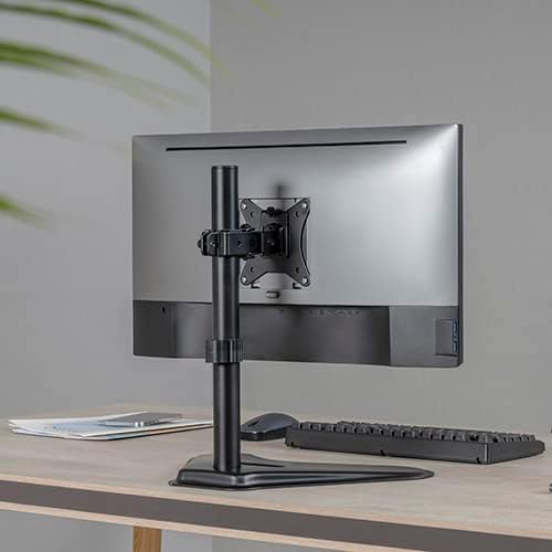 Jin Office Height Adjustable Monitor Stand Mount | Supports 13-32″ Screens| Monitor Mount for Desk | Metal Black Powder Coated Single Monitor Arm Stand| Freestanding Monitor Mount (Black)
