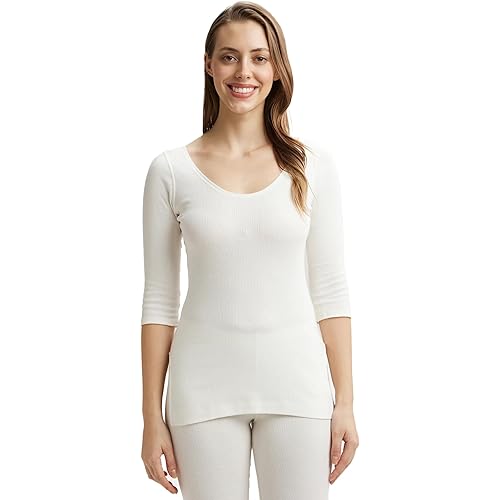 Jockey 2543 Women’s Super Warm Super Combed Cotton Rich Brushed Three Quarter Sleeve Thermal Top with Staywarm Technology