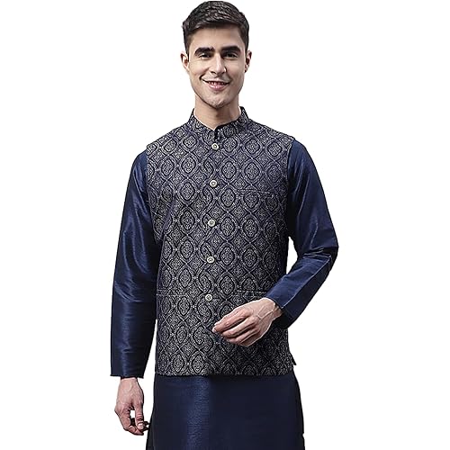 Fabric:Silk Blend Wash Instructions: Wash with like Colours Fit Type: Regular Fit Color may vary due to photographic effect Size Guide : Men's Waistcoats is in 3 inches loosing i.e. chest measurements for Waistcoats will be S(36)-39; M(38) – 41 ; L(4… read more
