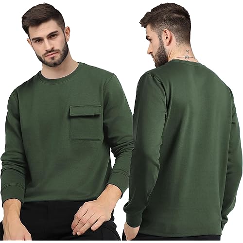 JUARI BE A GENTLEMAN Fullsleeve T-Shirt for Men | Made with Eco-Friendly Recycled Cotton Fabric | Stylish Forest Green Design with Front Pocket Detail
