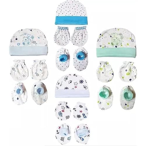 JUSTLIST New Born Baby Infant Soft Cotton Mitten Sets with Cap and Booties (Set of 4, Availability Colour May Vary and Print Designs)