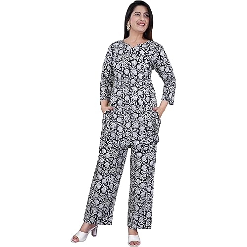 4754 reviews for KALPHEM Women’s Rayon Co-Ord Set, Two Piece Top and Pant, Casual Designer Print, Relaxed Fit Casual Co Ords Women Wear Fashionable for Party