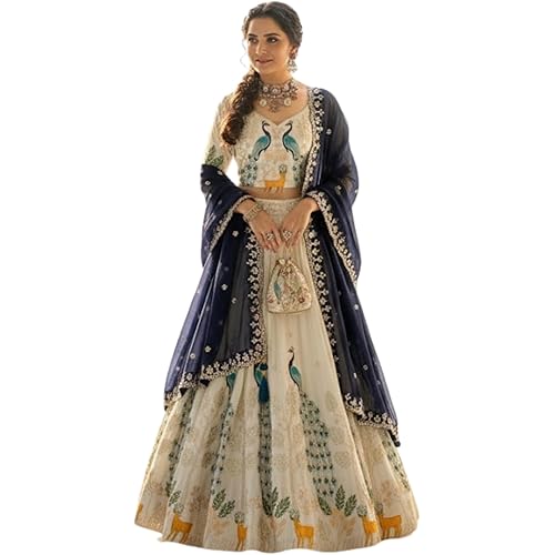 KANTUBA Women’s Lehenga Choli with Heavy Sequence Satin Silk Blend, Embroidered Dupatta & Unstitched Blouse for Wedding & Festival Wear (free size)