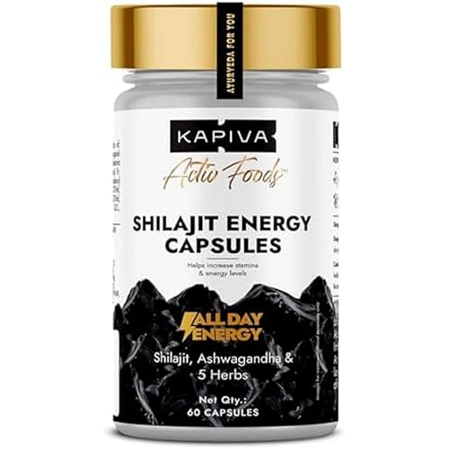 Kapiva Shilajit/Shilajeet Energy 60 Capsules | Made with 100% Pure Shilajit | For All Day Energy & Stamina | With Ashwagandha,Gokshura | Contains 12 Vitamins & 13 Minerals