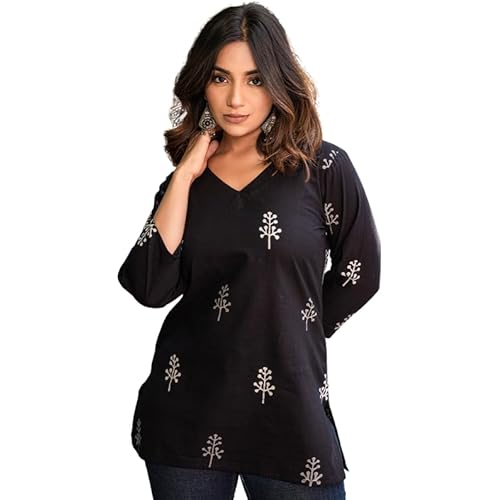 FABRIC – Rayon, Print – Floral, Size – XS,S,M,L,XL , 2XL,3XL Colour – Black BUST SIZE INCH :: XS (32), S (34), M (36), L (38), XL (40), XXL (42) Package contents : 1 Rayon 3/4th sleeve top: Pattern: Floral Top If you are looking for : women top for w… read more