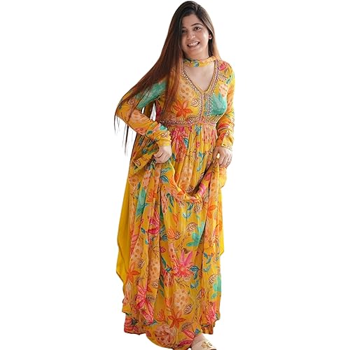 KD Women Floral Print Anarkali Kurta with Pant and Dupatta Set Anarkali Kurti for Women