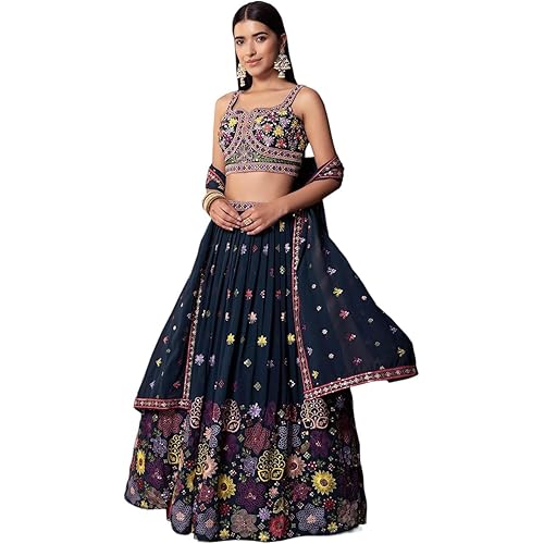 KEDARFAB Women’s Georgette Embroidery Lehenga Choli With Dupatta Set