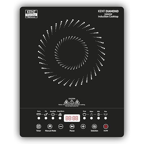 305227 reviews for KENT Diamond Induction Cooktop 2000W|8 Preset Menu|Full Microcrystalline Glass|Feather Touch Buttons & Led Display|Milk Boiling & Keep Warm Function|Overheat Protection & Auto Turn-Off, Radiant,Black