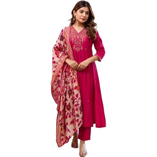 KLOSIA Women Embroidery Straight Kurta and Pant Set with Dupataa