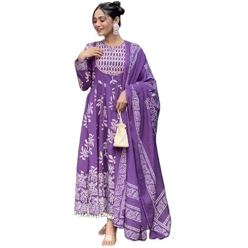 Fit Type: Anarkali Kurta; Anarkali Kurta set for women: Anarkali Kurta Pant and printed Dupatta Set Product Material :- Viscose | Colour :- Purple | Pattern :- Printed | Dupatta :- Chanderi Cotton | Style :- Anarkali Kurta | Sleeve Length :- 3/4 Slee… read more