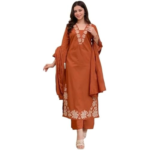 495562 reviews for Klosia Women Solid Embroidery Kurta and pant set With Dupatta