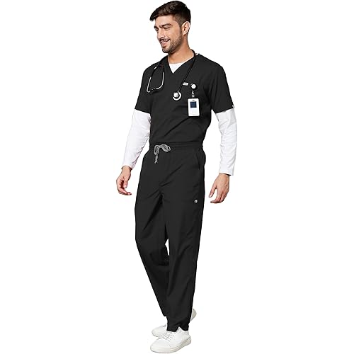 1676 reviews for KNYA Active Men’s 5-Pocket Scrub Suit | Set of Top & Bottom | Half Sleeves | V Neck | Breathable Fabric | Comfortable | Durable | Uniform for Doctors, Nurses and Dentists