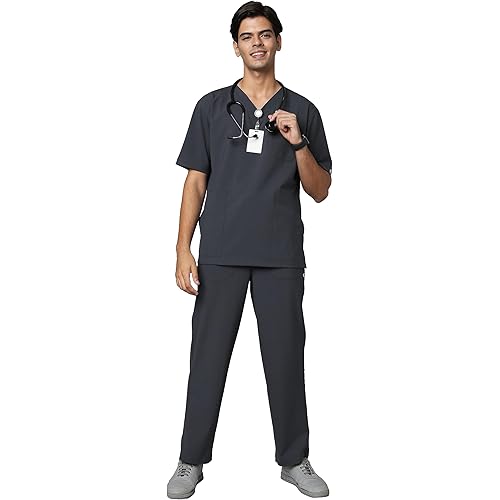 31 reviews for KNYA Ecoflex Men’s 5 Pocket Active Scrub Suit | Athleisure wear | Modern V neck | For Doctors (2XL, Steel Grey)