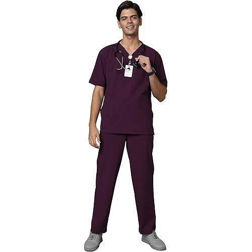 3 reviews for KNYA Ecoflex Men’s 5 Pocket Active Scrub Suit | Athleisure wear | Modern V neck | For Doctors (L, Wine)