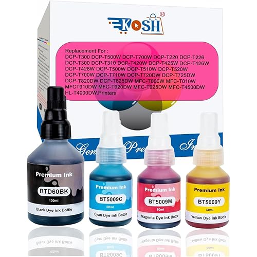 KOSH BTD60 BT5000 Refill Ink Compatible for Brother DCP-T300 T310W T500W T520W T220 T700W T420W T425W T426W T428W T720DW T725DW T820DW T810W T910DW T920DW Printers (4, Black Cyan Magenta Yellow)