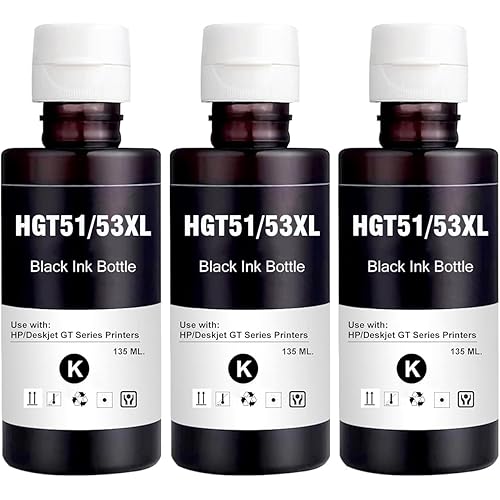 KOSH Refill Ink Bottle Compatible for HP Deskjet 5810,5811,5820,5821,5822, Inktank Wireless 310,315,316,319,410,415,416,419,Smart Tank 115,500,510,515,516,720,750,790 Printers (3, GT53XL 135MLx 3)
