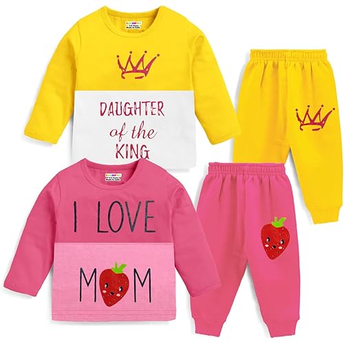 Kuchipoo Baby Girl Regular Fit Cotton T-Shirts and Pyjamas Set