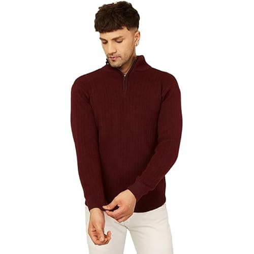 Kvetoo Men High Neck Zipper Full Sleeve Woolen Winter Sweater
