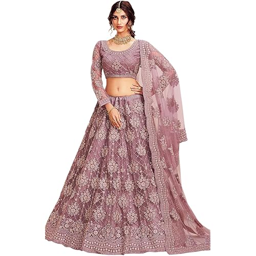 LADY SHOPI Women’s Net Embroidered Semi-Stitched Lehenga Choli Maanav LH-New