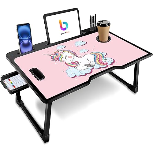 Laptop Table Foldable Wooden Mini Laptop Table for Bed, Study Table with Drawer, Tablet/Mobile Holder for Kids & Adults* (COTTED Unicorn)