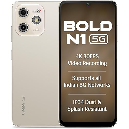 405297 reviews for Lava Bold N1 5G (Champagne Gold, 4GB RAM, 128GB Storage) |Bigger 6.75″ HD+ Notch Display | Octacore 5G Processor | 13 MP AI Camera |5000 mAh Battery| IP54 Rated Dust & Water Splash Proof