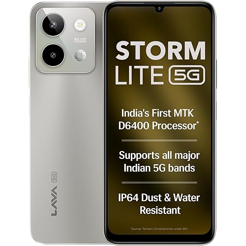 405525 reviews for Lava Storm Lite 5G (Cosmic Titanium, 4+4*GB RAM, 128GB Storage) | India’s First MTK Dimensity 6400 Processor | 50MP AI Camera | IP64 Rated | 120 Hz Display | 5000 mAh Battery | Supports All 5G Bands