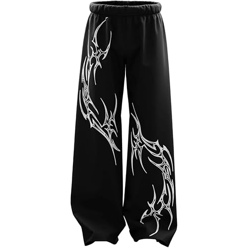 30555 reviews for LEGASUS Aesthetic Gothic Wide Leg Pants for Men | Tribal Print Baggy Streetwear | Oversized Track Pants with Elastic Waist | Black and White Relaxed Fit Bottoms