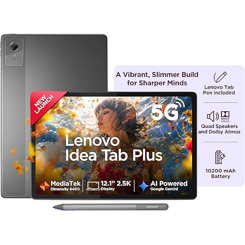 44518 reviews for Lenovo Idea Tab Plus with Pen |Wifi + 5G|12.1″ 2.5K Display, 800nits Peak Brightness|12GB RAM + 256GB ROM (Expandable upto 2TB)|MediaTek Dimensity 6400| 10200mAh|4 Speakers with Dolby Atmos| Luna Grey