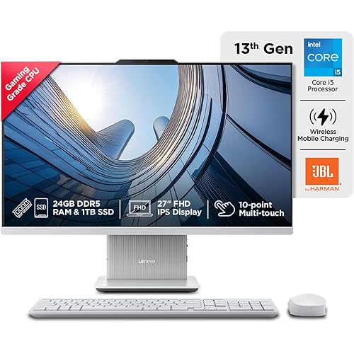 Lenovo IdeaCentre AIO Intel Core i5-13420H 27″ FHD Touchscreen (24GB RAM/1TB SSD/Win11/Microsoft 365 + Office 24/3Wx2 Harman/Wireless EOS Keyboard & Mouse,Grey), F0HM00W3IN All-in-One Desktop
