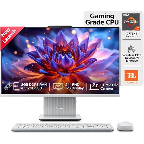 Lenovo Ideacentre AIO AMD Ryzen 7 7735HS 23.8″ FHD IPS All-In-One Desktop(16GB RAM/512GB SSD/Win11/Microsoft 365 Basic + Office Home 2024/3Wx2 Speakers/5MP Camera/Wireless Keyboard & Mouse),F0HR008YIN