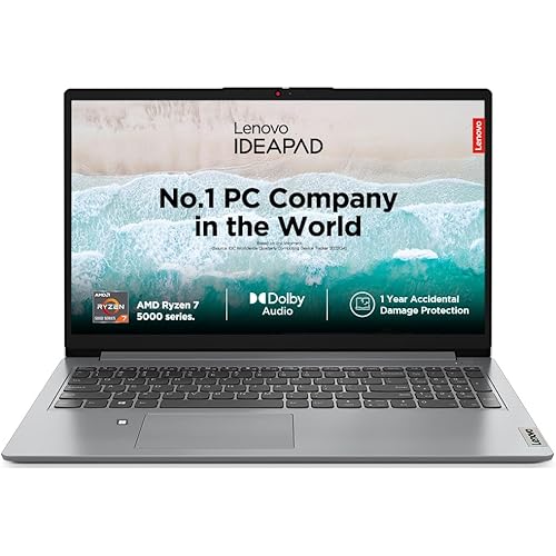 Lenovo IdeaPad Slim 1 AMD Ryzen 7 5700U 15.6″ HD Thin and Light Laptop (16GB/512GB SSD/Windows 11 Home/MS Office 2021/1 Year Warranty + 1 Year ADP/Cloud Grey/1.6Kg), 82R400EFIN