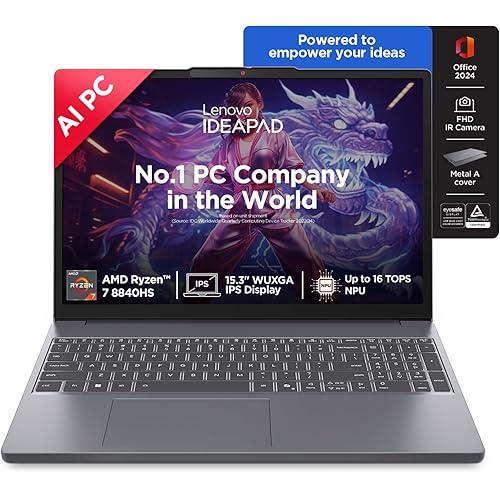 42514 reviews for Lenovo IdeaPad Slim 3 AMD Ryzen 7 8840HS 15.3 inch (38.8cm) WUXGA IPS AI PC Laptop(24GB RAM/1TB SSD/Windows 11/Office Home 2024/Backlit Keyboard/1Yr ADP Free/Grey/1.6Kg), 83KA004TIN