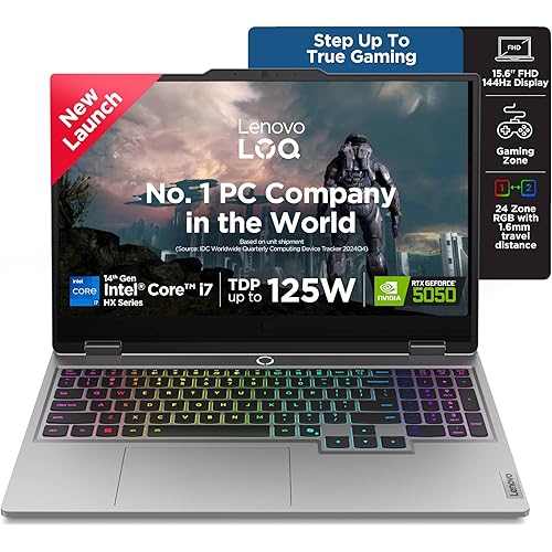 40510 reviews for Lenovo LOQ, Intel Core i7 14th Gen 14700HX, NVIDIA RTX 5050 8GB, 16GB RAM, 1TB SSD, 15.6″(39.6cm), 144Hz, Windows 11, Office 2024, Grey, 2.4Kg, 83JE00U6IN, 440 AI Tops, 3 Mon. Game Pass Gaming Laptop