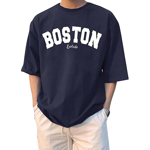 LEOTUDE Man Cotton Blend Graphic Print Round Neck Half Sleeve Drop Shoulder Oversized T Shirt (Color Navy Blue)