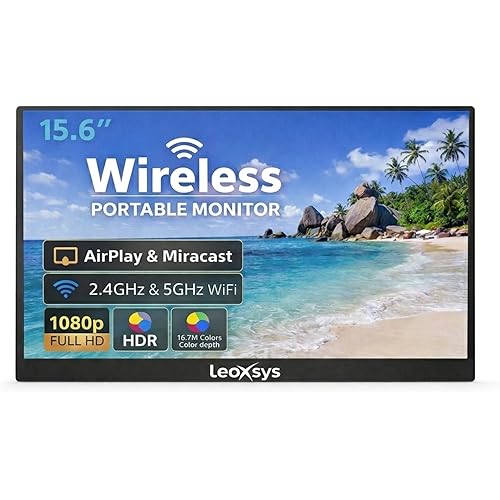 leoXsys 15.6 Inch Wireless Portable Monitor,Full HD 1080P IPS Display,Screen Mirroring via WiFi (Miracast/AirPlay), HDMI/Type-C Support,Compatible with Laptop,Android,iPhone,Mac,PS5 | 1 Year Warranty
