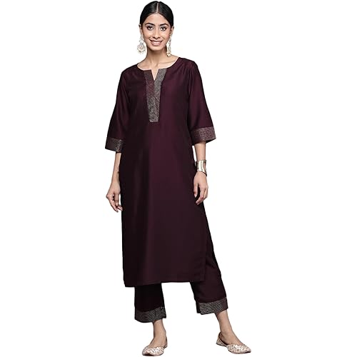 6 reviews for Libas Burgundy Solid Silk Blend Straight Kurta With Trousers