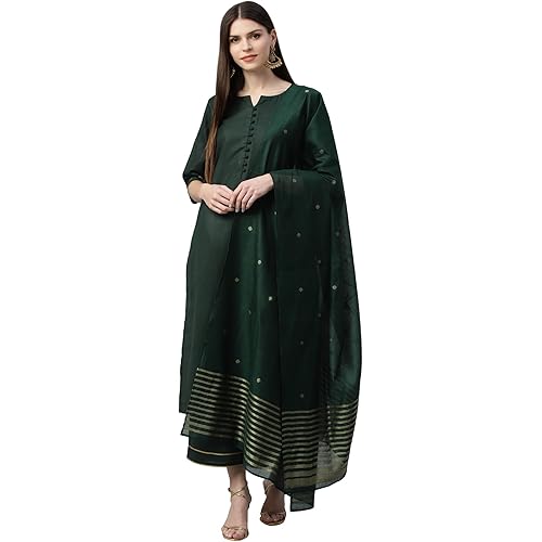 5 reviews for Libas Green Solid Cotton Straight Kurta With Palazzos & Dupatta