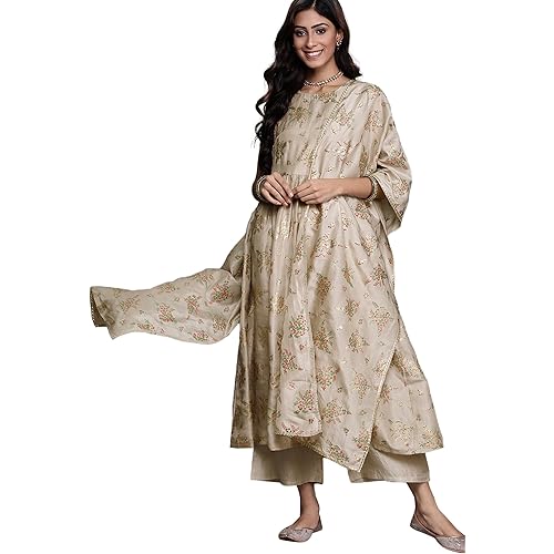 Top Color : Grey Set Contents : 1 Kurta 1 Palazzo 1 Dupatta Top Pattern : Printed Top Fabric :Silk Blend Occasion : Festive