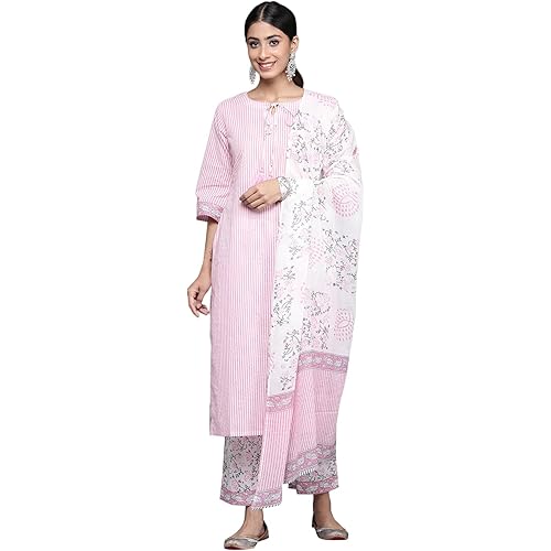Top Color : Pink Set Contents : 1 Kurta 1 Trousers 1 Dupatta Top Pattern : Printed Top Fabric :Cotton Occasion : Daily