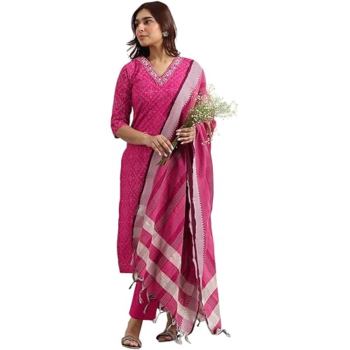Libas Printed Cotton Blend Straight Kurta With Trousers and Dupatta