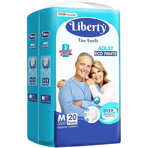 7124 reviews for Liberty Eco Adult Diaper Pants, Medium (M) Size, 20 Count, Waist Size (61-115cm | 24-45 inches), Unisex, High Absorbency, Leak Proof, Overnight Protection, Pack of 1