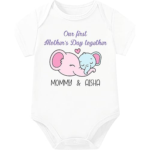 Lillyupp Personalised Baby Name ” Our First Mother’S Day Together ” Dress Romper For Boys And Girls. Baby Romper Outfit For Mothers Day Gift To New Mom Mommy