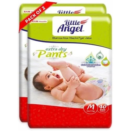 49159 reviews for Little Angel Extra Dry Baby Pants Diaper, Medium (M) Size, 80 Count, Super Absorbent Core Up to 12 Hrs. Protection, Soft Elastic Waist Grip & Wetness Indicator, Pack of 2, 40 count/pack, Upto 5-11kg