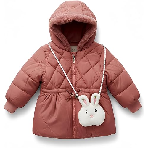LITTLE GINNIE Winter Quilted Jacket for Baby Girls | Hooded Puffer Jacket with Fleece Lining | Warm & Stylish Winter Wear | Regular Fit Polyester Jacket for Kids