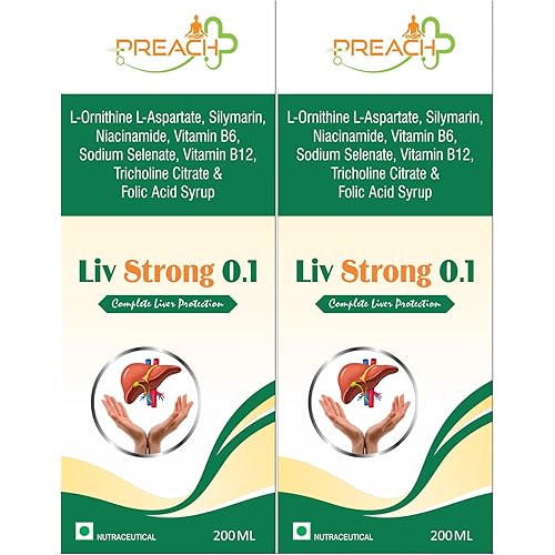 Liv Strong 0.1 L-Ornithine L-Aspartate, Silymarin, Niacinamide, Vitamin B6, Sodium Selenate, Vitamin B12 Folic Acid & Tricholine Citrate Syrup Pack Of 2 For Liver, Natural Skin Glow, Pigmentation, constipation & Gut Health