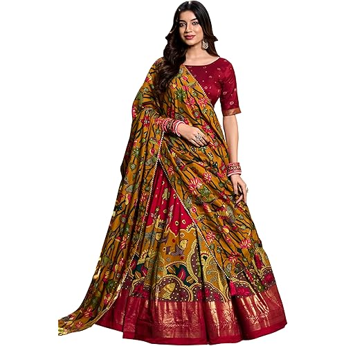 38533 reviews for LooknBook Art Women’s Wedding Special Tussar Silk With Kalamkari Print Lehenga Choli