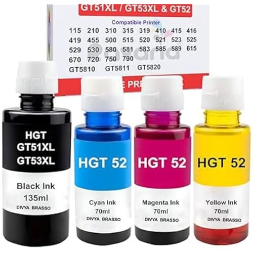 - Package : Black Ink GT51, 135mL, Cyan Ink GT52, 70mL, Magenta Ink GT52, 70mL, Yellow Ink GT52, 70ml (total 345mL of color ink).